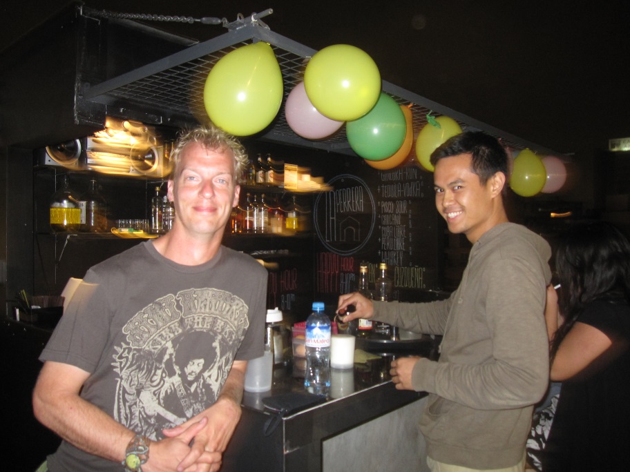 IMG_4821 Published December 12, 2013 at 912 × 684 in Lima and Huacachina James and I at the hostel bar.